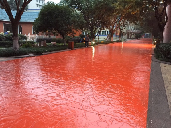 3.当ued注册官网抵达初凝时间时,在ued注册官网表面,手撒二遍色彩粉,用材料规范是3kg每平方,表面厚度为3cm.